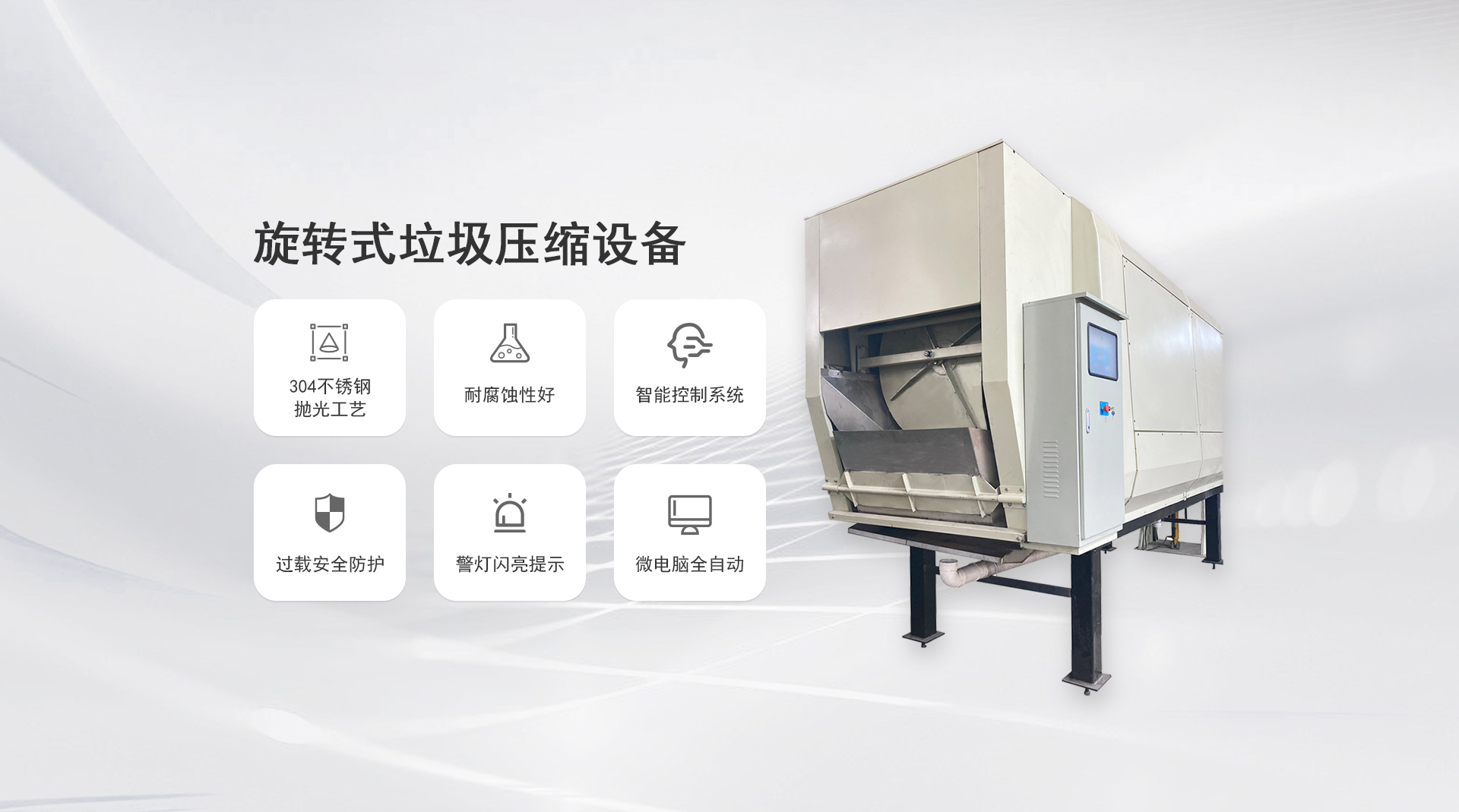 工作原理:滾筒螺旋葉片旋轉(zhuǎn)壓縮儲存。滾筒和葉片采用SUS304不銹鋼板制造,耐腐蝕性好。當垃圾進入滾筒內(nèi),滾筒旋轉(zhuǎn),在螺旋葉片作用下壓縮垃圾...